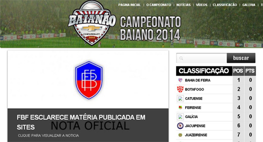 Outra novidade da FBF foi lançamento do novo hotsite do Campeonato Baiano de Futebol 2014. Esta iniciativa conta com conteúdo inteiramente voltado para os assuntos da competição mais importante do estado e um dos mais antigos do país. O espaço servirá como uma espécie de portal para que os fanáticos do futebol possam conferir notícias, classificações, tabelas, estatísticas e artilharia. Haverá também interatividade para você torcedor ganhar muitos prêmios.