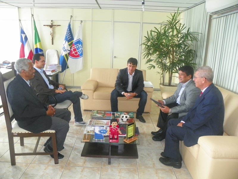 Nesta quarta-feira (2), o presidente da Câmara de Conquista, Fernando Vasconcelos compareceu à sede da FBF, acompanhado do deputado estadual Zé Raimundo, para entregar a Ednaldo Rodrigues a placa da homenagem feita no dia 14 de março, com a aprovação de todos os vereadores da casa.
