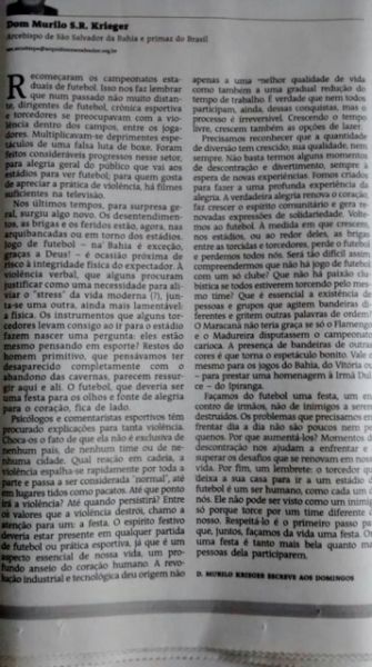 Fonte: Coluna Dom Murilo Krieger/ A Tarde
