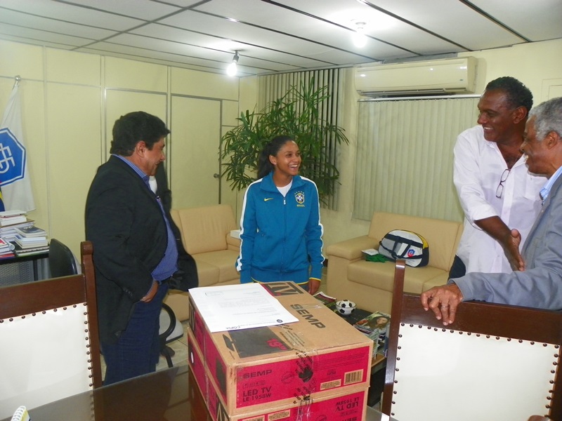 Nesta quarta-feira (8), a atleta, que começou pra valer no mundo da bola aos 11 anos e se profissionalizou aos 16, esteve ao lado de Claudir Prado, campeão brasileiro pelo Bahia em 1988 e um dos fundadores do Juventude de Vitória da Conquista em uma reunião na Federação Bahiana de Futebol (FBF). A garota e o dirigente foram recebidos pelo presidente da entidade, Ednaldo Rodrigues, o vice-presidente, Ricardo Nonato e o presidente da Ceaf-BA, Wilson Paim.