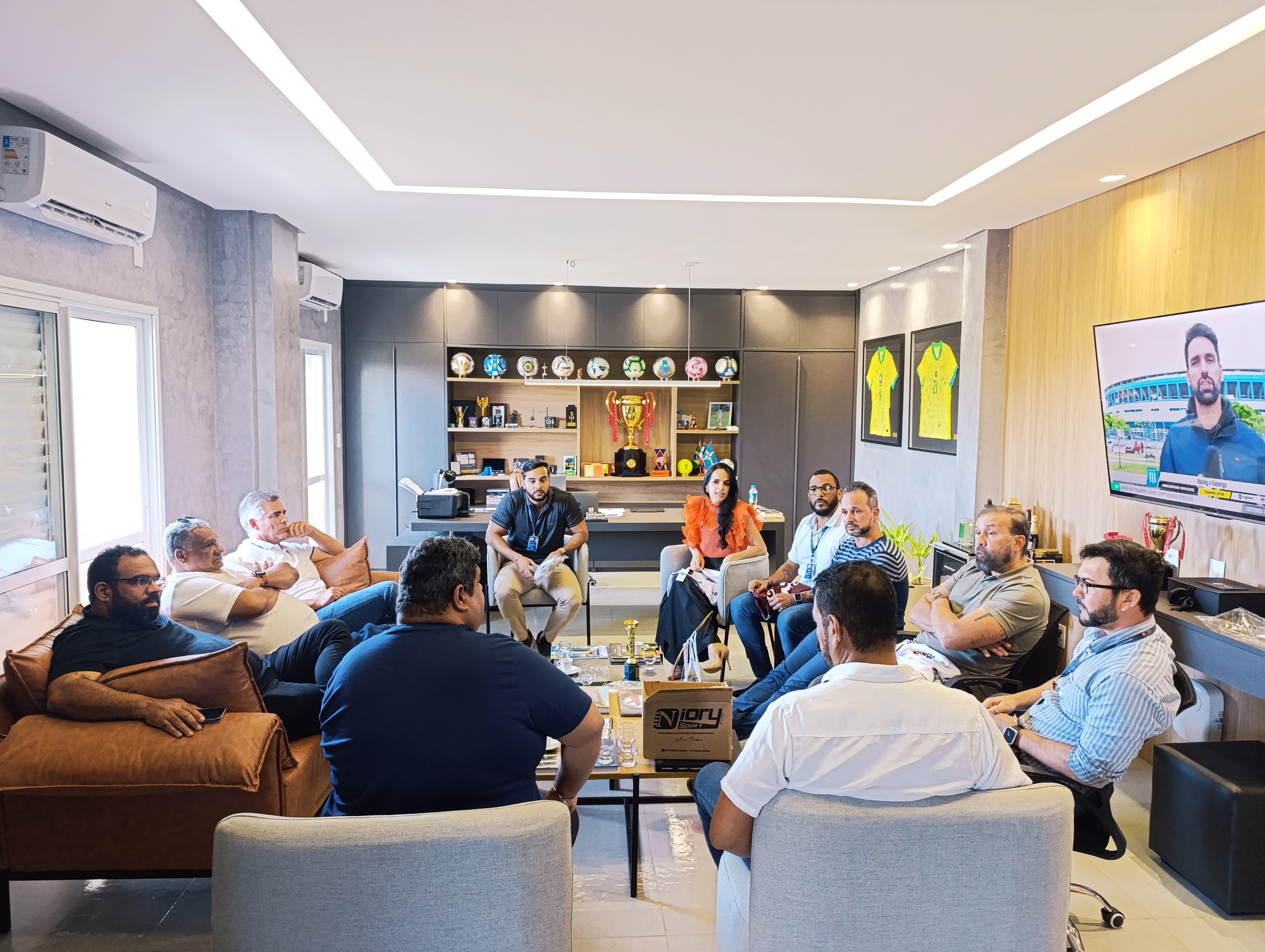 Na oportunidade, o filiado anunciou uma parceria com o Fluminense de Feira para a disputa do Baianão 2026. O presidente da SAF do Touro do Sertão, Filemon Neto, também esteve presente.