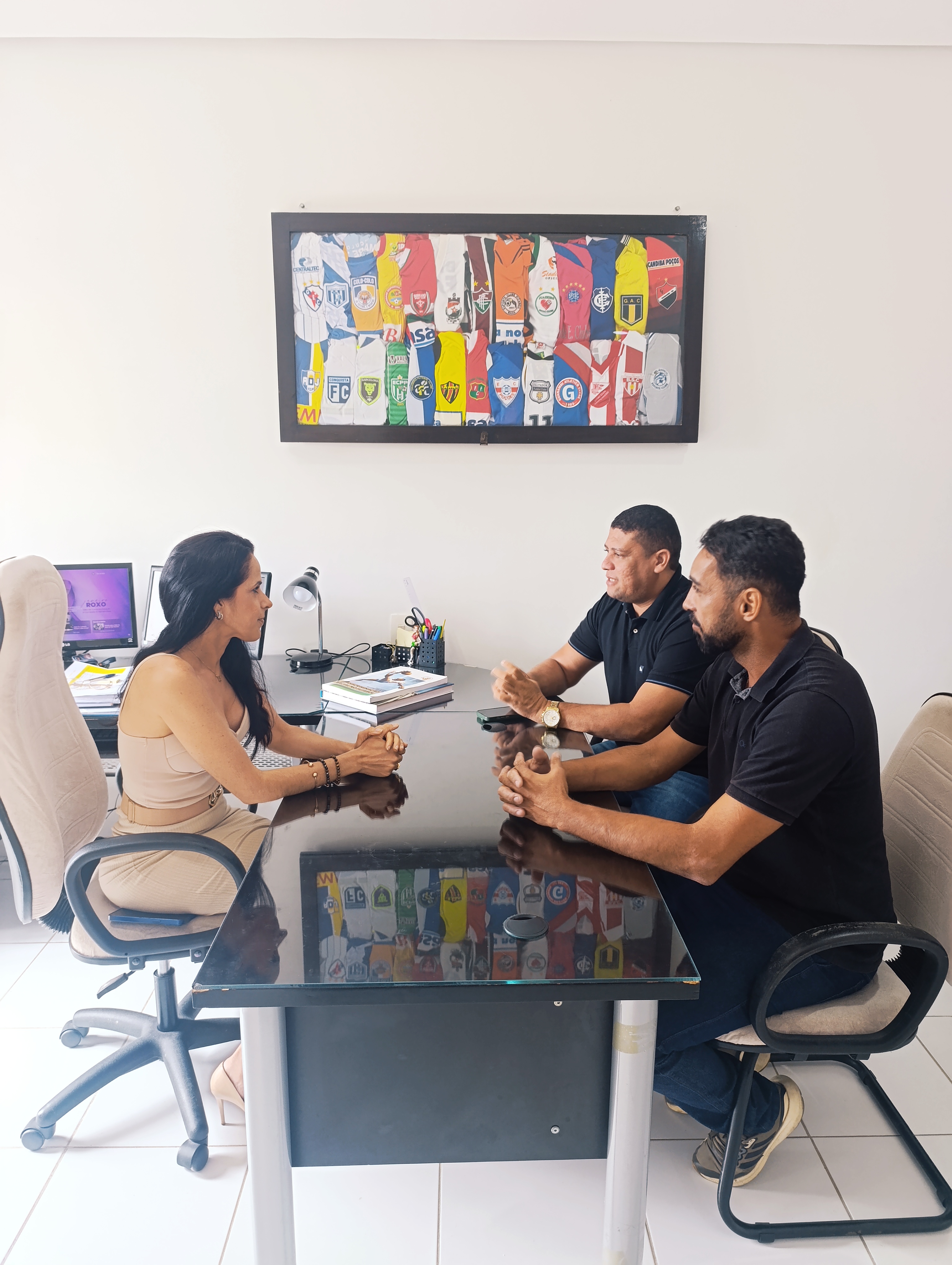 Estiveram presentes na entidade o presidente da liga, João Henrique Rios, e o técnico da seleção, João Carigé. A dupla foi recebida pela diretora de competições, Taíse Galvão.