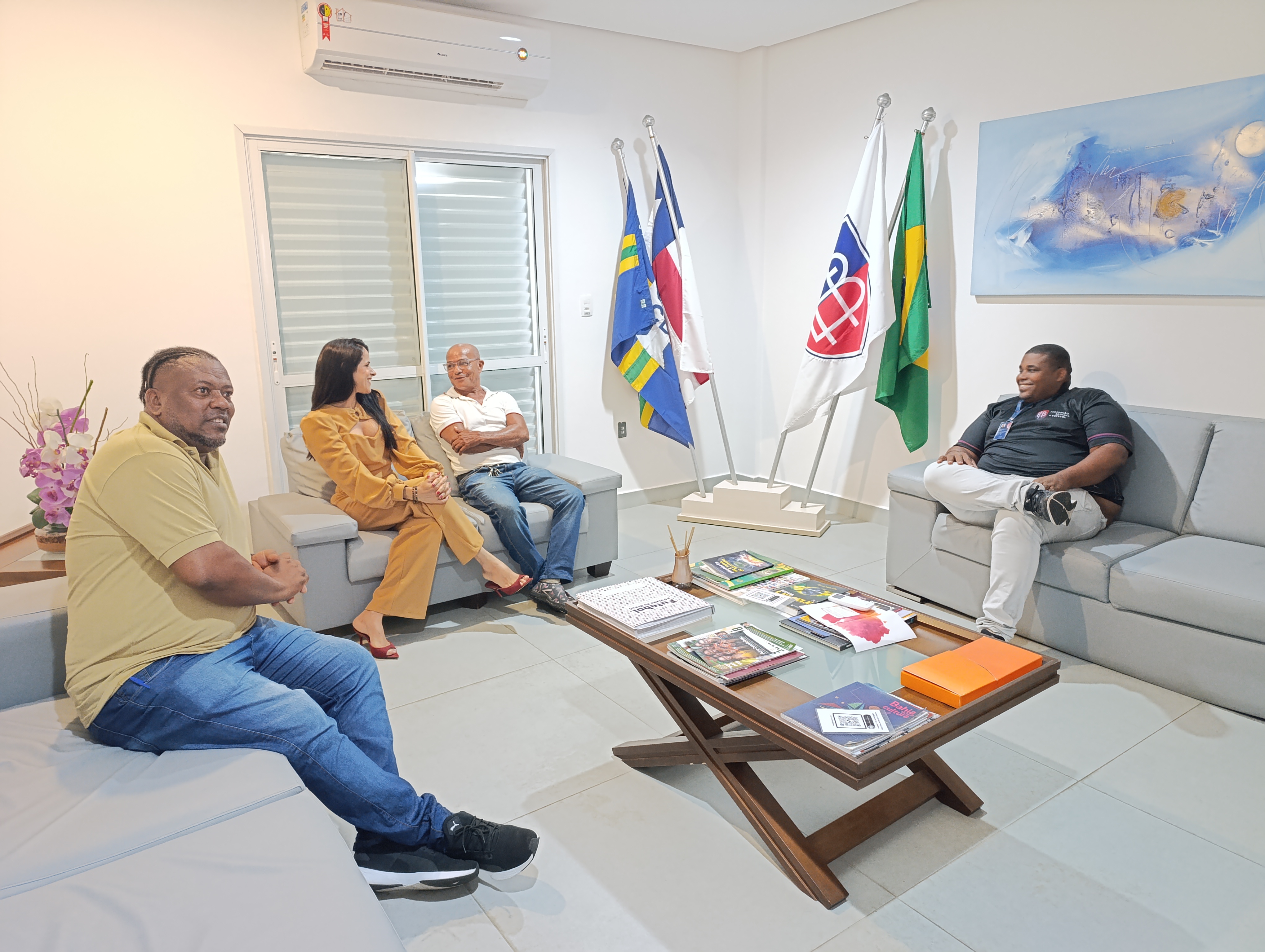Ao lado do diretor de árbitros da liga, Antônio Arnaldo, ele foi recebido na entidade pela diretora de competições, Taíse Galvão, e pelo coordenador de competições, Márcio Sousa. No encontro, eles também discutiram sobre as competições e projetos da liga para o futebol da cidade em 2026.