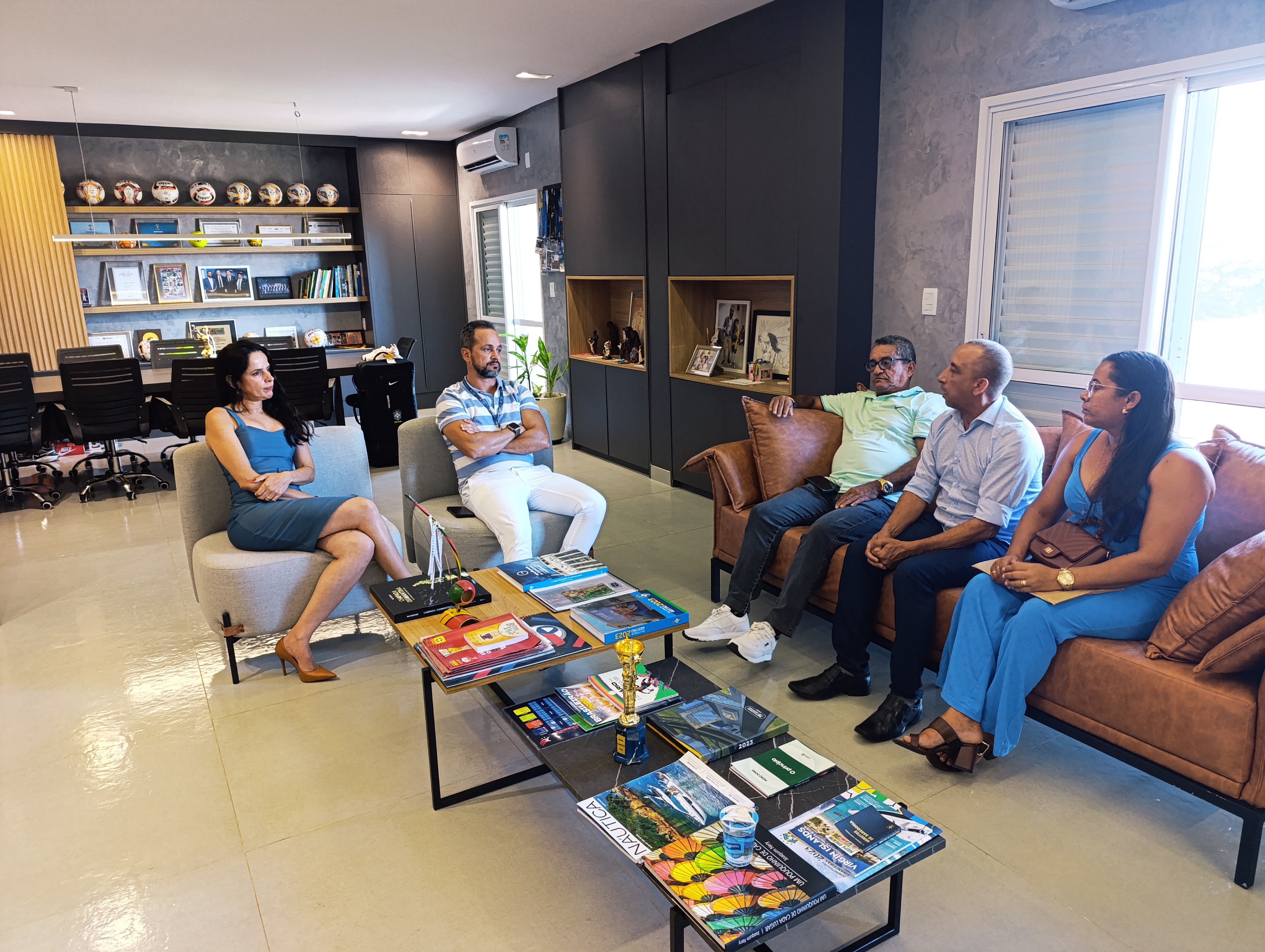 Também participaram da reunião a diretora financeira da liga, Alcinete Pereira, e o diretor da Liga Castroalvense de Futebol, João Carlos Carneiro, que fez uma visita de cortesia à FBF ao acompanhar Adival Guerra.