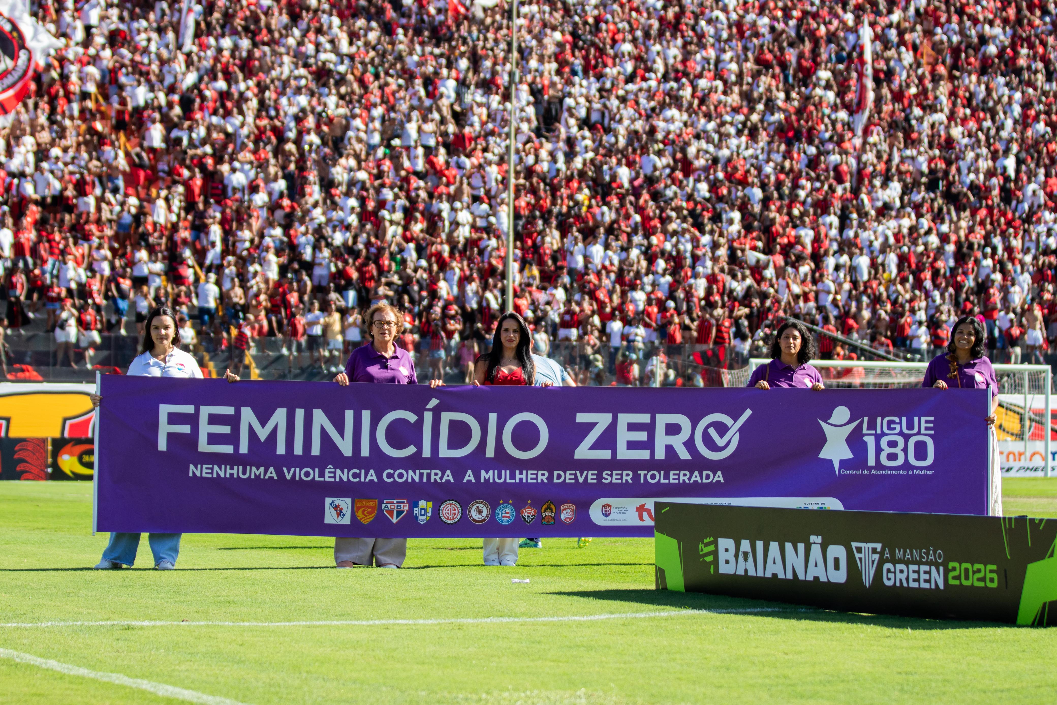 Feminicídio Zero - O Ba-Vi também foi palco de mais uma ação da campanha Feminicídio Zero, do Governo do Estado, que conta com o apoio da FBF. Antes do clássico, Taíse Galvão recebeu a secretária estadual de políticas para as mulheres, Neusa Cadore, para exibição da faixa de conscientização para a campanha.