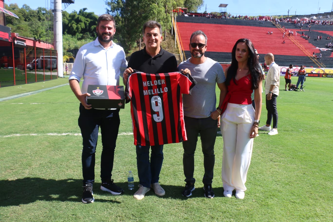 No gramado, antes do início da partida, Helder e os dirigentes posaram para foto com o presidente do Vitória, Fábio Mota, e o diretor de operações e relações institucionais do Bahia, Vitor Ferraz. O diretor executivo da CBF ainda foi presenteado pelo presidente rubro-negro com uma camisa personalizada do clube.