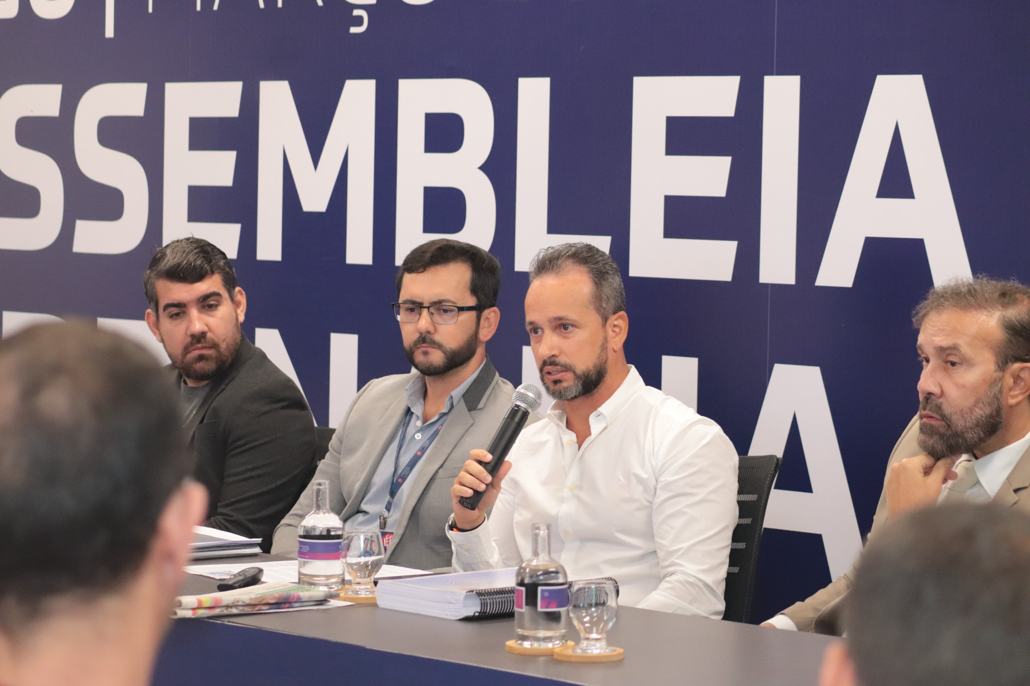 Em seguida, o diretor administrativo e financeiro da entidade, Marcelo Araújo, o contador Carlos Andrade e o vice-presidente do Conselho Fiscal, Wildbergue Santos, deram sequência aos trabalhos. Também foram convidados para compor a mesa diretora o presidente do Esporte Clube Vitória, Fábio Mota, o diretor de operações e relações institucionais do Esporte Clube Bahia SAF, Vitor Ferraz, e o presidente da Liga Desportiva de Alagoinhas, Washington Barreto.