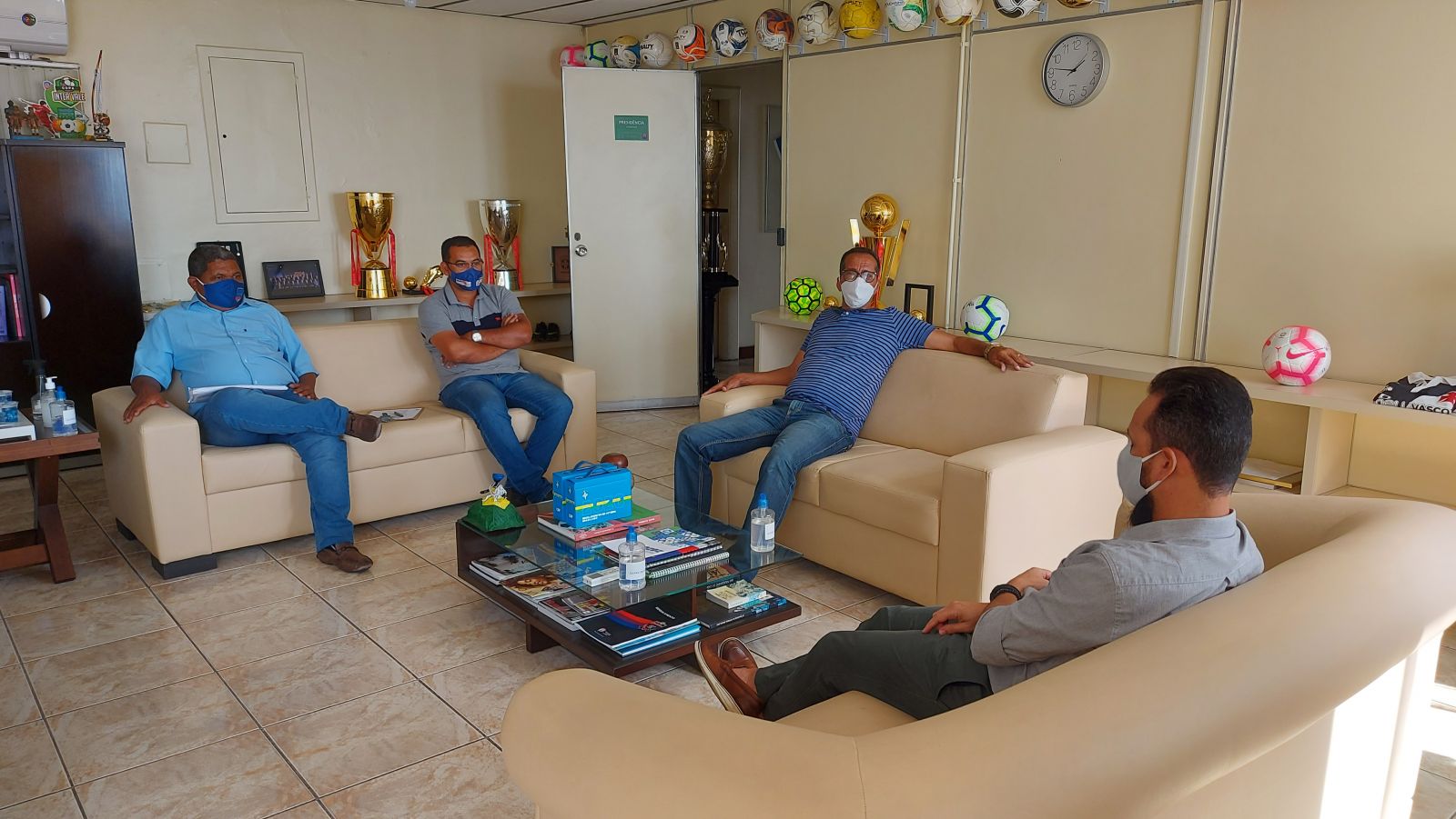 O trio conversou com o presidente da entidade, Ricardo Lima, e o vice-presidente, Manfredo Lessa. Com o avanço da vacinação e a redução dos casos de Covid-19 na cidade, o retorno das competições municipais também foi tratado no local.