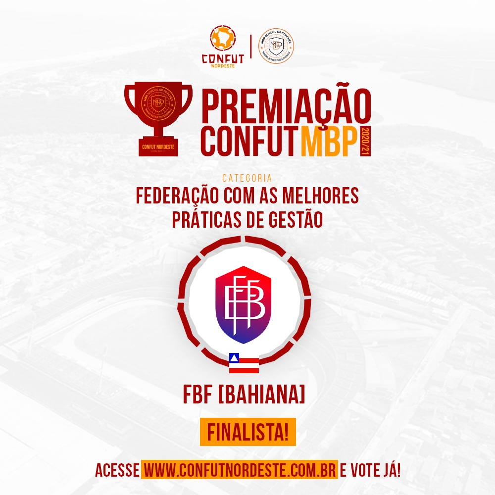 A Federação Bahiana de Futebol está entre as três finalistas do Prêmio Confut Nordeste de melhores práticas de gestão. A premiação ocorrerá na Conferência de Futebol do Nordeste, evento que está na sua segunda edição e será realizado em Maceió, de 28 a 30 de outubro.
