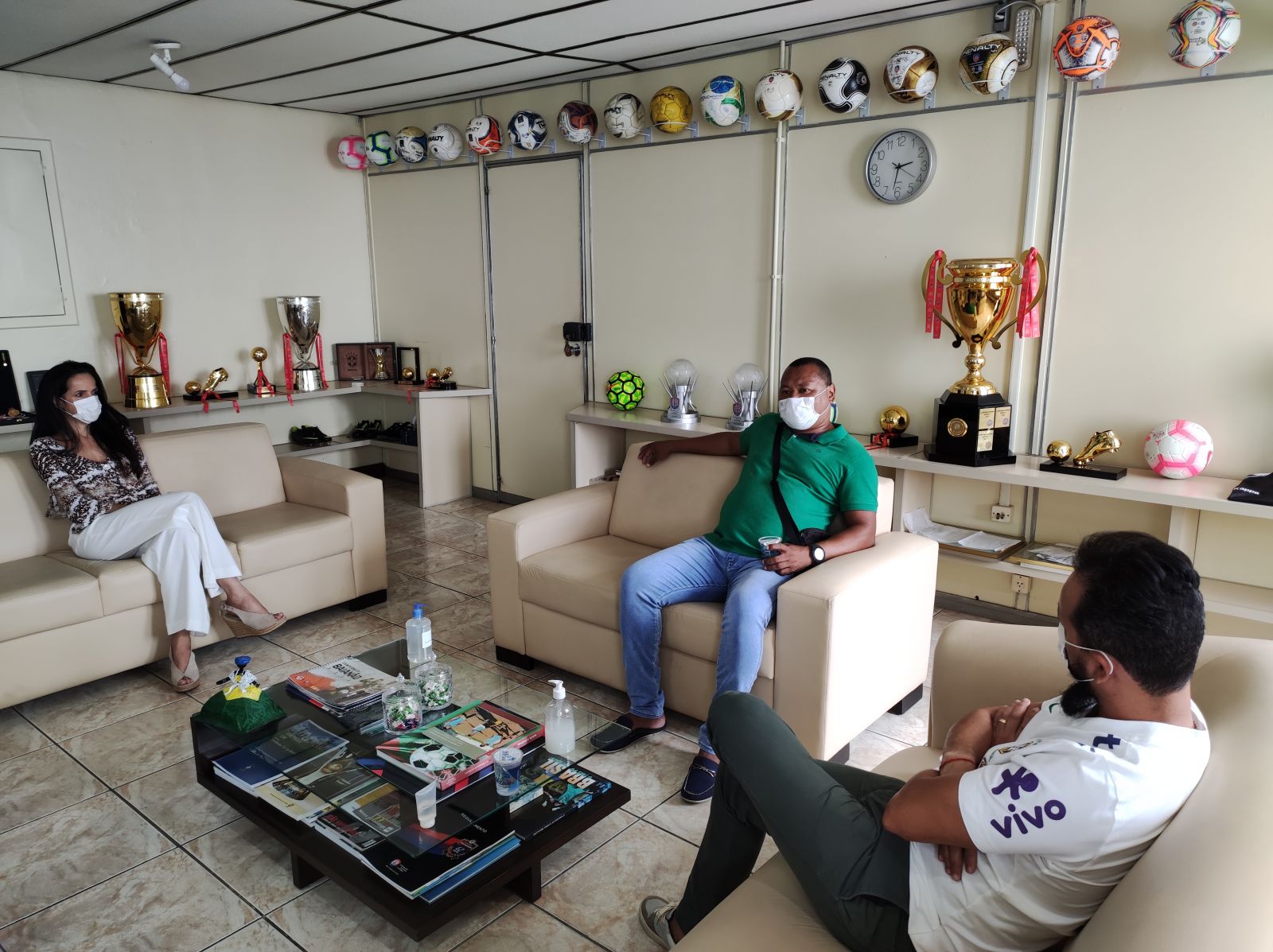 Nesta quarta-feira (5), o presidente da filiada, Joilson da Silva, esteve na sede da Federação Bahiana de Futebol para detalhar seus projetos para a temporada 2022. O desportista se reuniu com o presidente da entidade, Ricardo Lima, e a diretora de competições, Taíse Galvão.