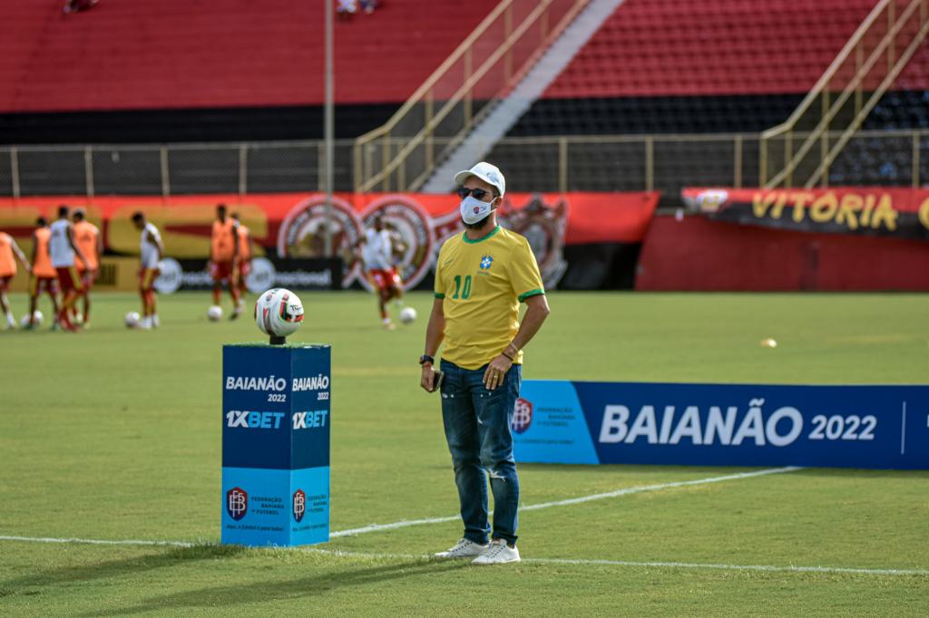 O presidente da Federação Bahiana de Futebol, Ricardo Lima, acompanhou mais um jogo da primeira rodada do Baianão 1XBET 2022. No domingo (16), o dirigente esteve no Barradão e assistiu ao empate de Vitória e Juazeirense, por 1 a 1.