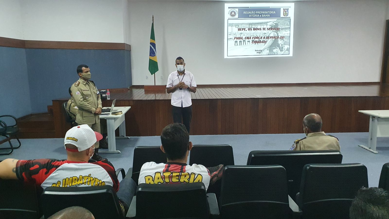 O encontro aconteceu na sede do Batalhão Especializado de Policiamento de Eventos (BEPE). A Federação Bahiana de Futebol foi representada por Silvio Mendes Jr. Também compareceu o secretário do Tribunal de Justiça Desportiva do Futebol da Bahia, Roberto Araújo.
