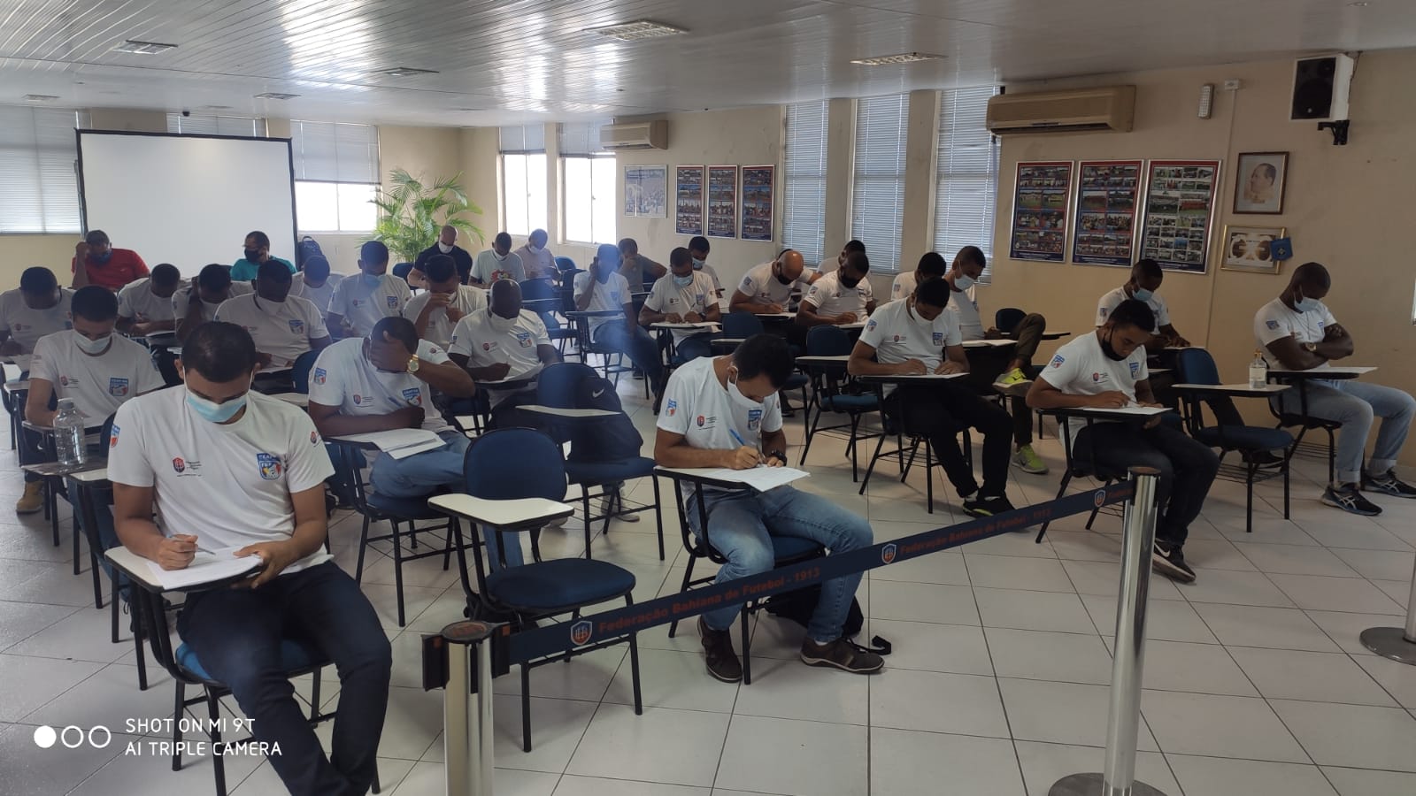Avaliação teórica - No mesmo dia, mas pela manhã, outro grupo de árbitros compareceu ao auditório da Federação Bahiana de Futebol. No local, foi realizado o “reteste” teórico para a temporada do futebol baiano.