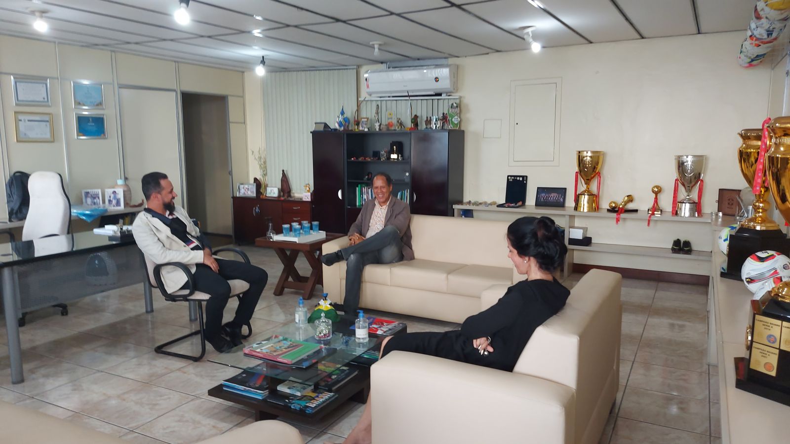 Na oportunidade, ele se reuniu com o presidente da FBF, Ricardo Lima, e a diretora de competições, Taíse Galvão. No encontro, foram discutidos projetos para o fomento do futebol na cidade.