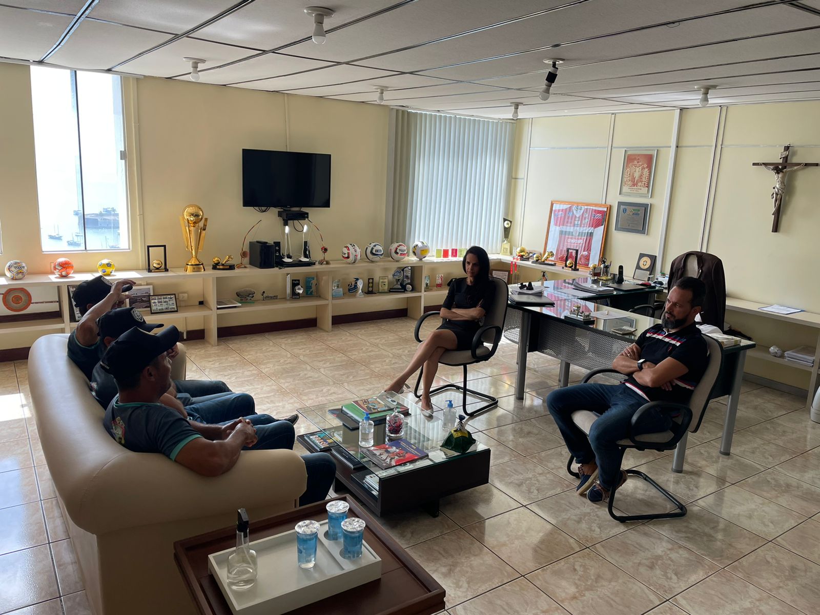 O trio foi recebido pelo presidente da FBF, Ricardo Lima, e a diretora de competições, Taíse Galvão.