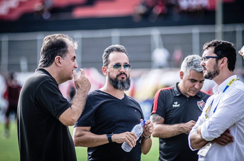 À tarde no Barradão, o Presidente da FBF, Ricardo Lima, acompanhou o empate de 1 a 1 entre Vitória e Jacuipense. Ele foi acompanhado pelo Diretor Administrativo e Financeiro da entidade, Marcelo Araújo.