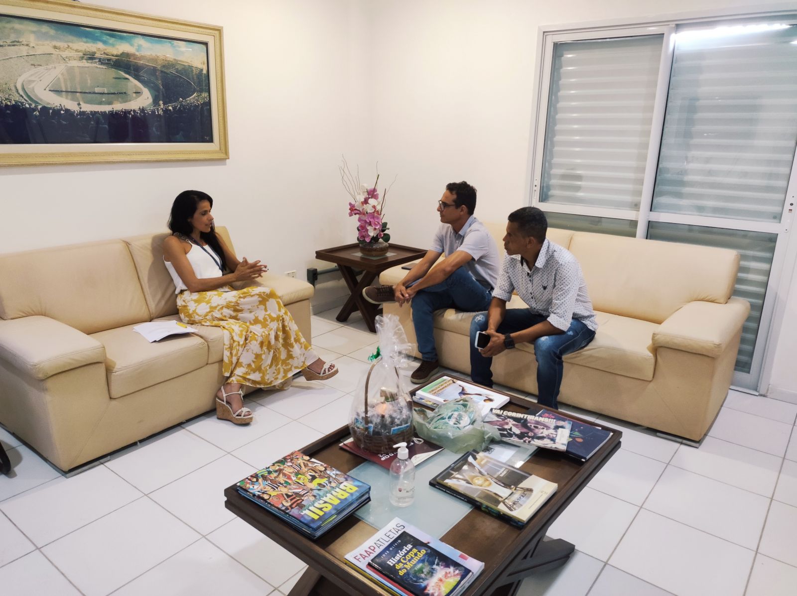 O presidente da Liga, Pedro Henrique, e o Diretor de Árbitros, Amâncio Pereira, foram recebidos na Federação Bahiana de Futebol pela Diretora de Competições, Taíse Galvão. Na visita, os jacobinenses presentearam a dirigente com uma camisa da seleção e uma cesta com iguarias da cidade.
