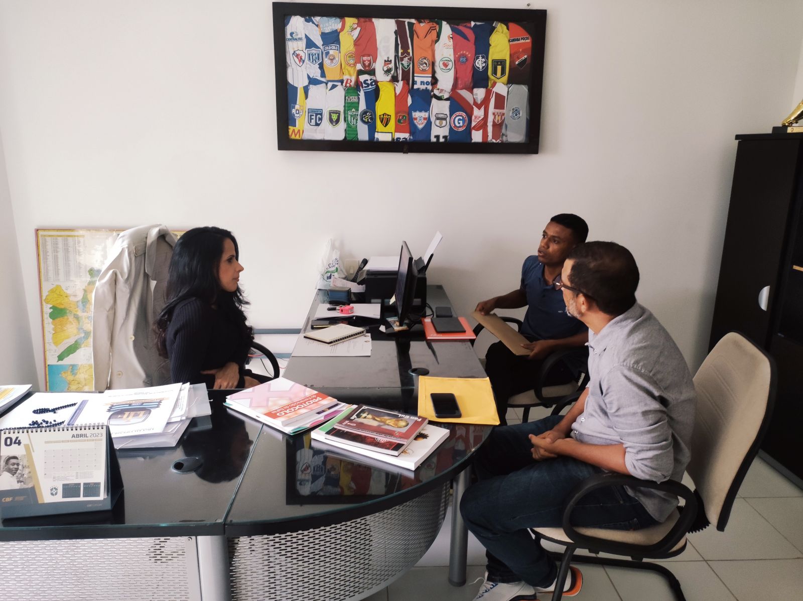 Na oportunidade, Adriano apresentou à dirigente o Presidente da Liga de Santanópolis, Kelson Quirino. O desportista busca a filiação da liga à FBF.