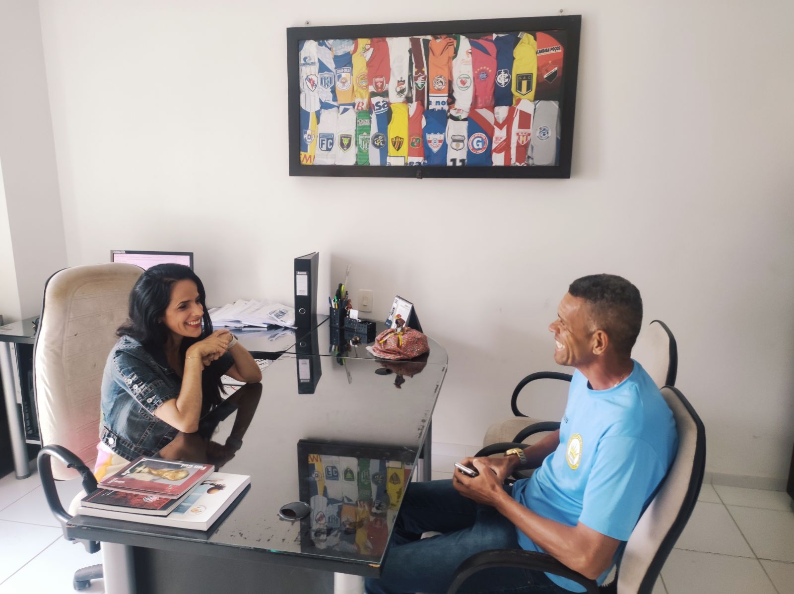 A Diretora de Competições da Federação Bahiana de Futebol, Taise Galvão, se reuniu nesta sexta-feira com o Presidente da Liga de Serra Preta, Roberto Teixeira. O desportista fez sua primeira visita à entidade após ser reeleito para o cargo.