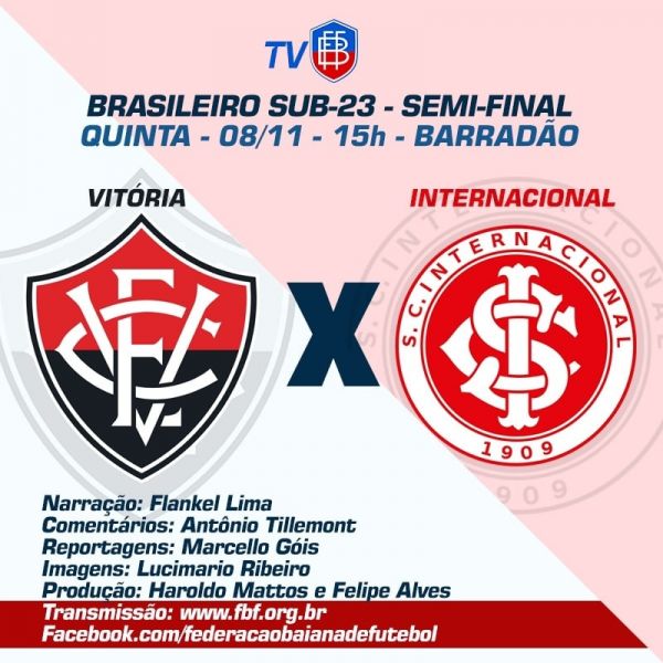 Na primeira transmissão da TV FBF de um jogo envolvendo um clube filiado à Federação Bahiana de Futebol, o Vitória derrotou o América-MG, por 3 a 1, no Barradão, pelo Campeonato Brasileiro de Aspirantes (Sub-23). E a equipe da TV FBF estará nesta quinta-feira (8), à tarde, no estádio rubro-negro para transmitir as emoções da partida decisiva do Leão pela semifinal da competição nacional, contra o Internacional.