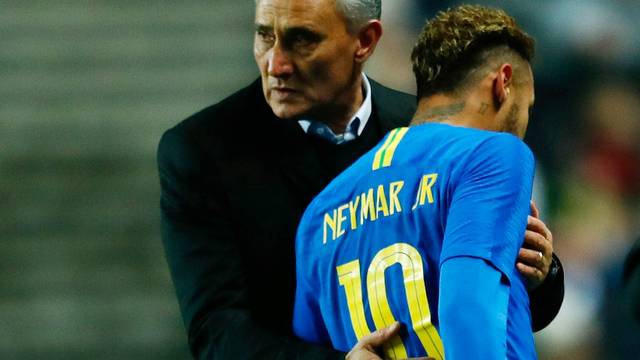 Tite consola Neymar na saída de campo do atacante com 6 minutos de jogo