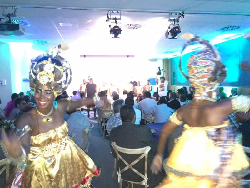 No encerramento da festa de lançamento, os presentes foram brindados com um exibição de integrantes do bloco afro Muzenza, um dos mais tradicionais do Carnaval de Salvador.