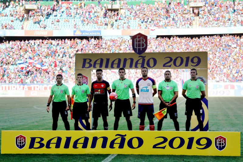 Diego Pombo, ao centro, apitou o clássico BaVi do último domingo (10), pelo Baianão 2019