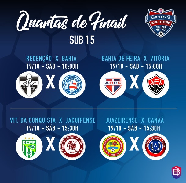 No Sub-17, os confrontos são Canaã x Galícia, Vitória x Vitória da Conquista, Bahia de Feira x Juazeirense e Jacuipense x Bahia.