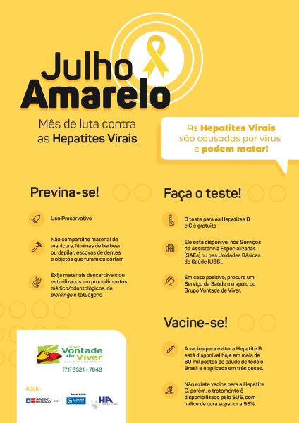 Julho é o mês da luta contra as Hepatites Virais. Por isso, o Grupo Vontade de Viver criou a campanha "Julho Amarelo".