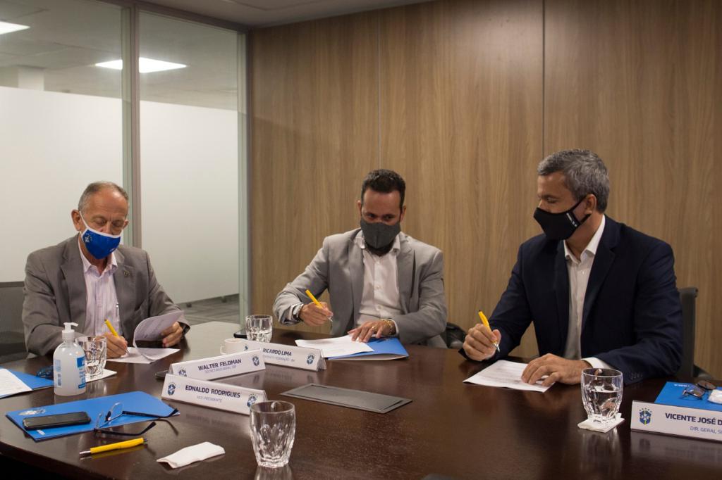 A assinatura contou com as presenças, ainda, do presidente da CBF, Rogério Caboclo, do vice-presidente, Ednaldo Rodrigues, e do Secretário-Geral, Walter Feldman.