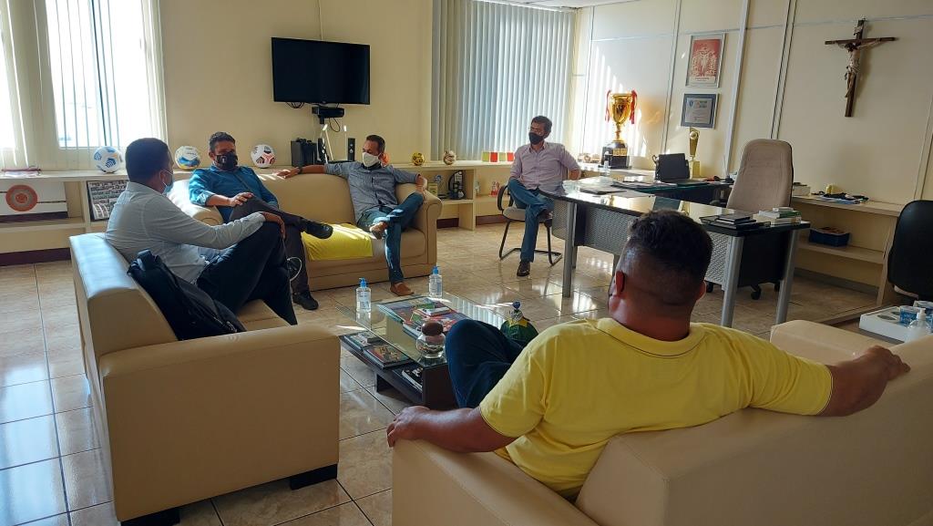 Em reunião, o trio apresentou todo o planejamento para a retomada das atividades do clube e ainda presenteou o dirigente com uma camisa oficial da equipe. Também participou do encontro o diretor administrativo e financeiro da FBF, Marcelo Araújo.