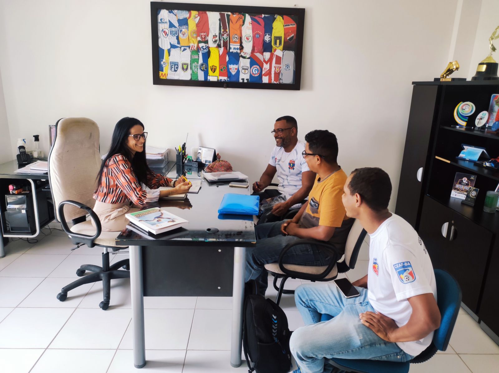 Já pela tarde, o encontro foi com a Diretora de Competições, Taíse Galvão. Nas reuniões, foram discutidos projetos de incentivo para o futebol não profissional de Alagoinhas.