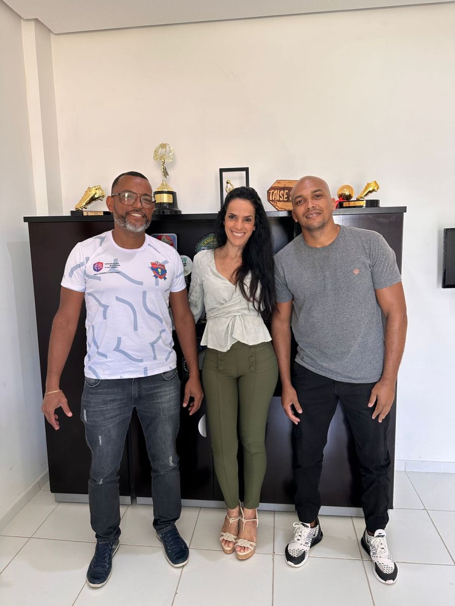 Nesta sexta-feira (29), o presidente da liga, Washington Barreto, esteve na sede da entidade para apresentar a programação do último dia de campeonato. Acompanhado do diretor Antônio Pedro Sena, ele foi recebido pela Diretora de Competições da FBF, Taíse Galvão.