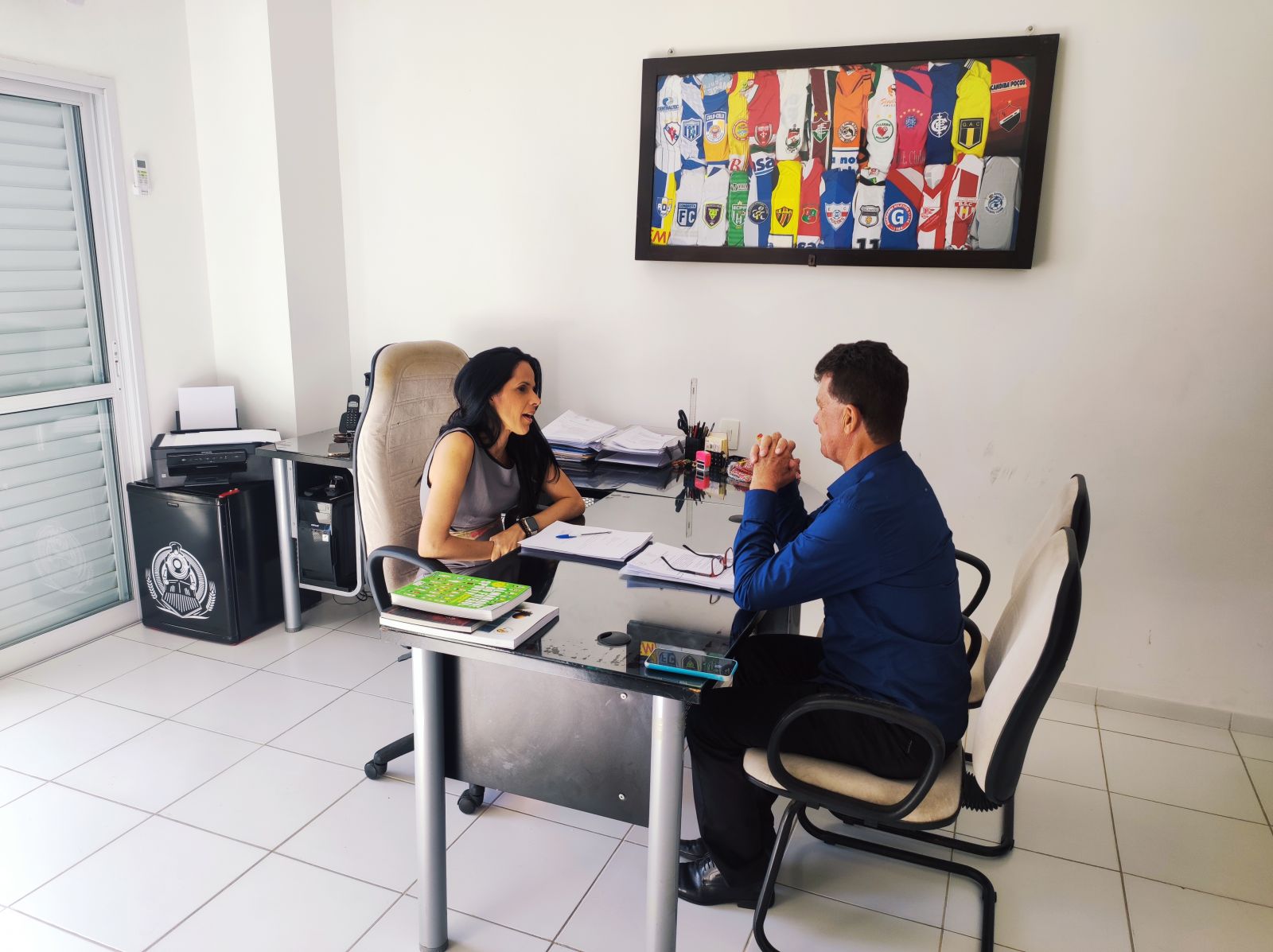 A Diretora de Competições da Federação Bahiana de Futebol recebeu a visita de mais um filiado. Nesta quinta-feira (23), quem esteve com a dirigente foi o Presidente da Liga de São Domingos, Edilson Lopes.