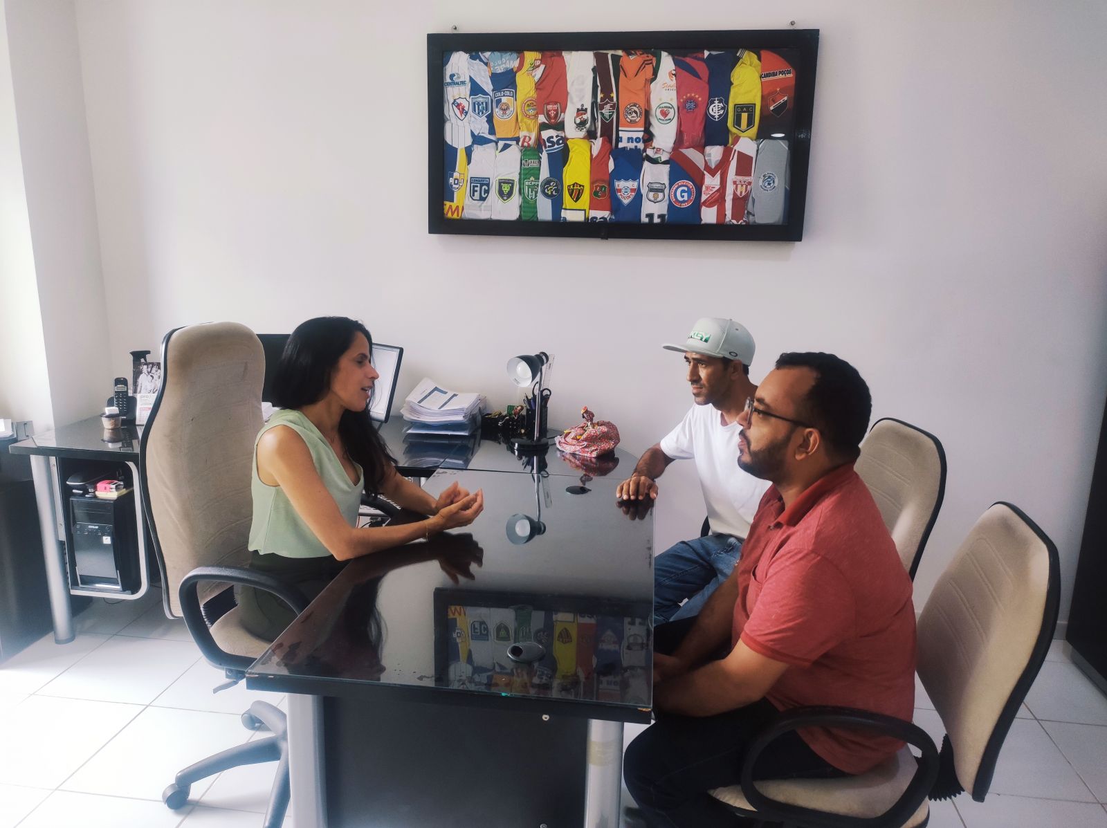 Nesta semana, dirigentes da Liga estiveram na sede da entidade para apresentar detalhes do campeonato. Patrício de Oliveira e Jair Rios foram recebidos pela Diretora de Competições da FBF, Taíse Galvão.