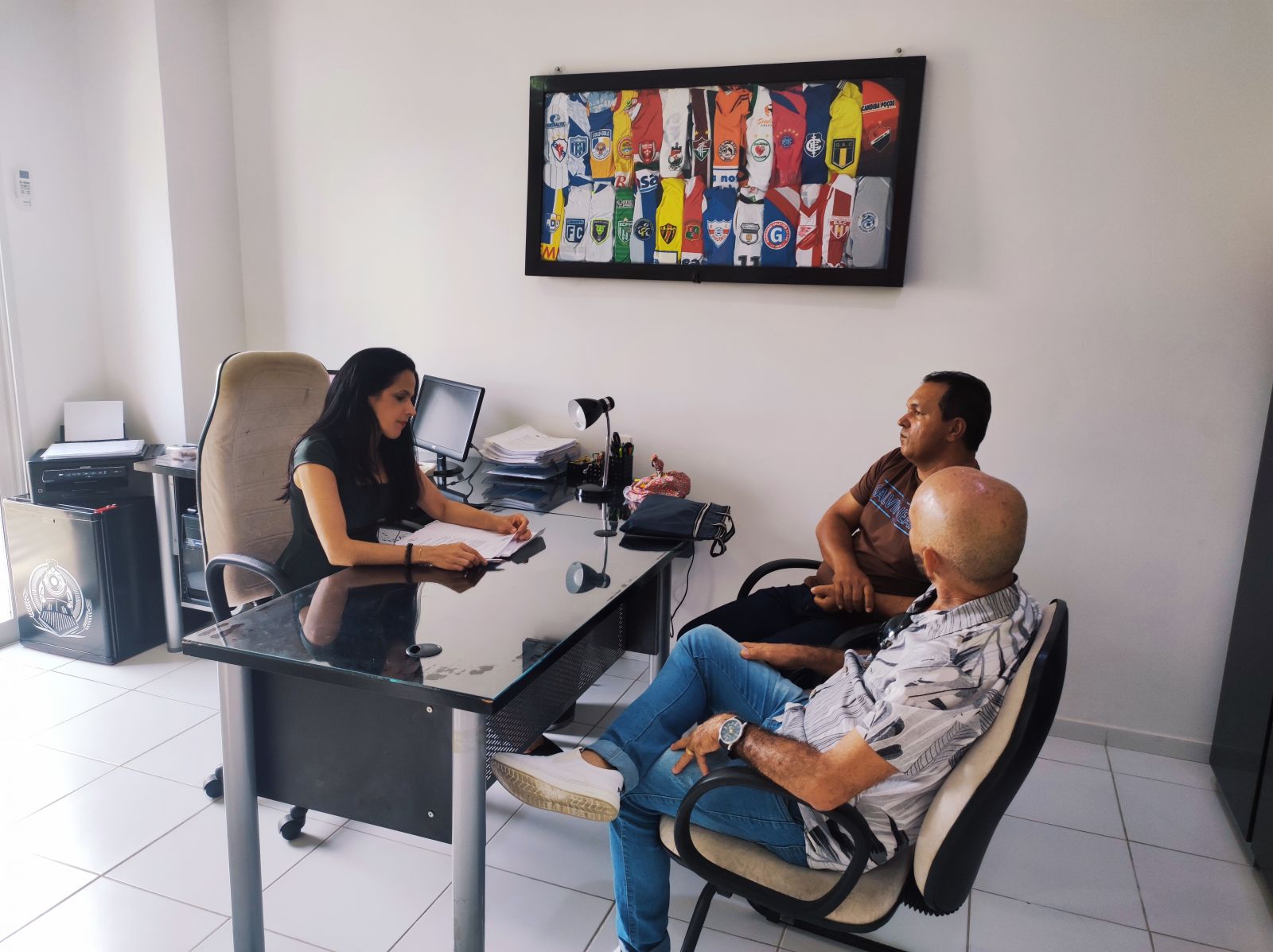 Nesta semana, o presidente da Liga, José Ailton dos Santos, esteve na sede da FBF para fazer um balanço do campeonato. Ele se reuniu com a Diretora de Competições da entidade, Taíse Galvão.
