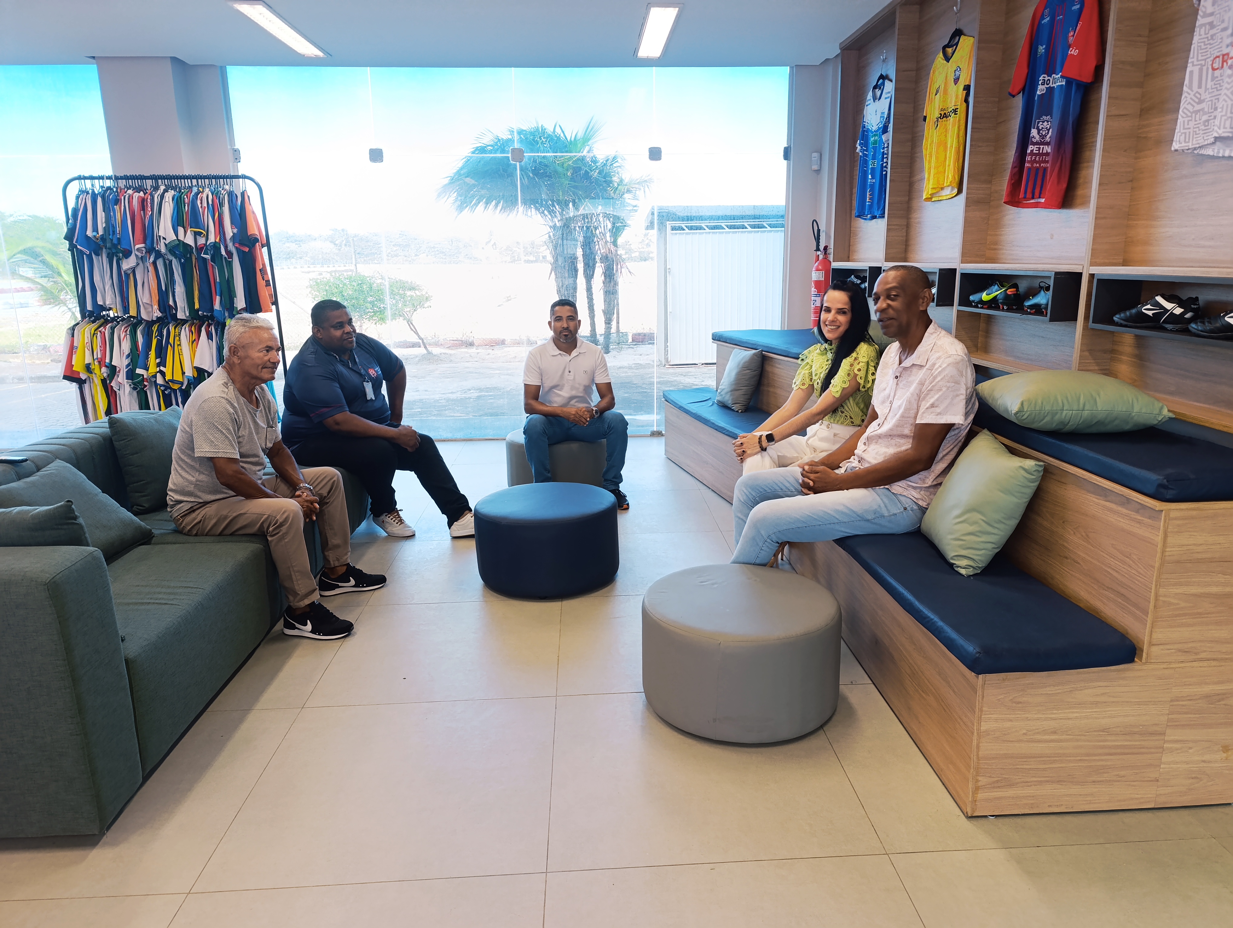 Desportistas de Biritinga estiveram na sede da Federação Bahiana de Futebol nesta quinta-feira (6). O presidente da Liga Desportiva Biritinguense, Edemilson Sacramento, o diretor de marketing da liga, Arismário do Santos, e o diretor municipal de Esportes, José Roberto Pereira, se reuniram com a diretora de competições da entidade, Taíse Galvão, e com o coordenador de competições, Márcio Sousa.